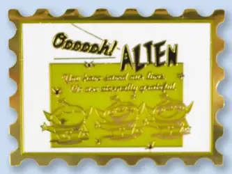 Little Green Men/Aliens Stamp is an Open Edition pin from the IKNOWK - Toy Story Stamps pin series. It was originally released in August, 2023 and was available from an Officially Licensed Disney trading pin vendor (see description for more information).