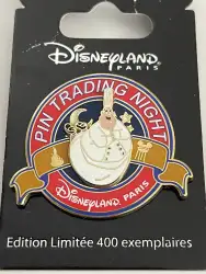 Gusteau is a Limited Edition (LE) 400 pin from the Pin Trading Night pin series. It was originally released on , 2014 and was available from Disneyland Resort Paris .