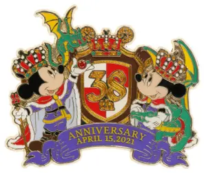 38th Anniversary - King Mickey, Queen Minnie and Dragons Logo is a Limited Release pin from the Tokyo Disneyland Anniversaries pin series. It was originally released on , 2021 and was available from Tokyo Disneyland Resort .