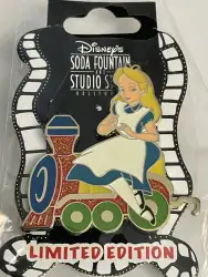 Alice is a Limited Edition (LE) 300 pin from the Wonderland train pin series. It was originally released on , 2013 and was available from Disney Studio Store Hollywood / Soda Fountain .