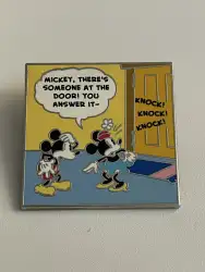 Mickey Minnie Someone at the Door is a Limited Release pin from the Mickey comic mystery Collection pin series. It was originally released on , 2013 and was available from Multiple Sources (WDW, DLR, etc.).