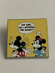 Mickey Minnie Missing the Game is a Limited Release pin from the Mickey comic mystery Collection pin series. It was originally released on , 2013 and was available from Multiple Sources (WDW, DLR, etc.).
