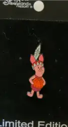 Piglet in Native Headdress Carrying Pumpkin is a Limited Edition (LE) 1800 pin from the Thanksgiving pin series. It was originally released on , 2001 and was available from Disneyland Resort .