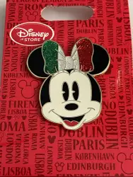 Minnie Mouse with Italian Flag Bow is an Open Edition pin from the European Disney Stores Exclusives pin series. It was originally released in January, 2014 and was available from Disney Store UK .