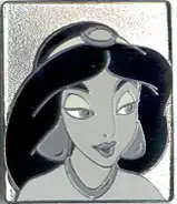 Jasmine is an Open Edition pin from the Cast Lanyard Series 1 - Black and White Princess Headshots pin series. It was originally released in August, 2003 and was available from Disneyland Resort .