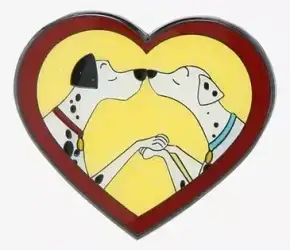 Pongo and Perdita in a red heart is an Open Edition pin from the Hot Topic - Disney Animal Couples Mystery Collection pin series. It was originally released on , 2023 and was available from Loungefly .