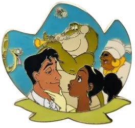 Pin features Tiana , Prince Naveen , Louis , Ray , Mama Odie and Juju from The Princess and the Frog
