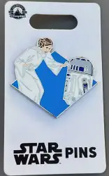 Princess Leia and R2-D2 is an Open Edition pin from the Star Wars - Diamond Portraits pin series. It was originally released on , 2023 and was available from Multiple Sources (WDW, DLR, etc.).