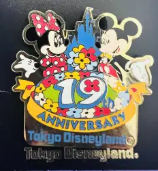 19th Anniversary Tokyo Disneyland is an Open Edition pin from the Tokyo Disneyland Anniversaries pin series. It was originally released on , 2002 and was available from Tokyo Disneyland Resort .