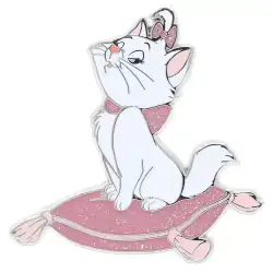 Pink glitter Marie on cushio is a Limited Edition (LE) 500 pin from the Pink A La Mode (PALM) Exclusives pin series. It was originally released on , 2024 and was available from an Officially Licensed Disney trading pin vendor (see description for more information).