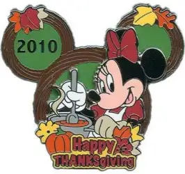 Happy Thanksgiving 2010 - Minnie is a Limited Edition (LE) 3000 pin from the Thanksgiving pin series. It was originally released on , 2010 and was available from Multiple Sources (WDW, DLR, etc.).