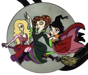 The Sanderson Sisters (GitD) is a Limited Release pin from the Cast Exclusive Bolo Lanyards pin series. It was originally released in January, 2020 and was available from Multiple Sources (WDW, DLR, etc.).