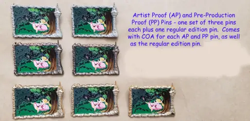 Tangled Swinging Dreams Pre-Production and Artist Proof Sets is a Limited Edition (LE) 15 pin from the ArtLand Masterworks pin series. It was originally released on , 2020 and was available from Artland / ACME .