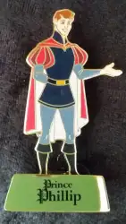 Prince Phillip is a Limited Edition (LE) 500 pin from the Happily Ever After Gold Nameplate Mystery Set pin series. It was originally released on , 2014 and was available from Disneyland Resort .