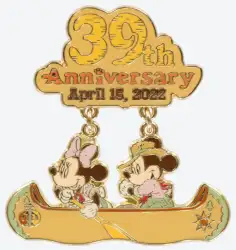 39th Anniversary Logo - Mickey and Minnie Rowing Canoe Dangle is an Open Edition pin from the Tokyo Disneyland Anniversaries pin series. It was originally released on , 2022 and was available from Tokyo Disneyland Resort .