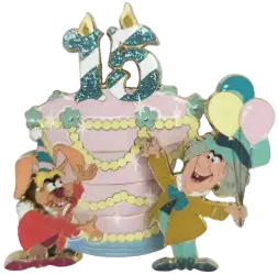 Mad Hatter and March Hare is a Limited Edition (LE) 300 pin from the D23 15 Fan-tastic Years - 15th Anniversary Cakes Collection pin series. It was originally released on , 2024 and was available from Disney Employee Center .
