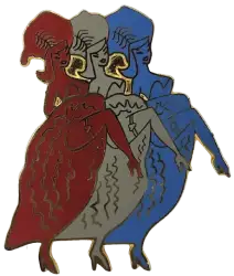 Golden Horseshoe Revue Can-can Dancer Girls is a Limited Edition (LE) 1500 pin from the Disneyland 50th Anniversary Boxed Frontierland Pin Set pin series. It was originally released in January, 2005 and was available from Disney Store US .