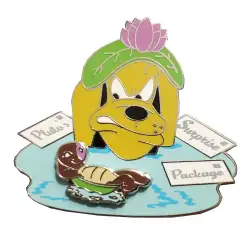 Pluto's Surprise Package is a Limited Edition (LE) 2000 pin in the Have a Laugh Framed Set 7-pin set from the Have a Laugh! pin series. It was originally released on , 2010 and was available from Multiple Sources (WDW, DLR, etc.).
