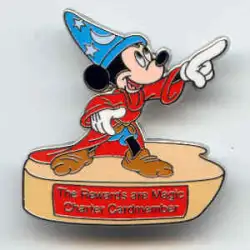 The Rewards are Magic - Sorcerer Mickey is a Limited Edition (LE) pin from the Disney Visa Card pin series. It was originally released on , 2003 and was available from Multiple Sources (WDW, DLR, etc.).
