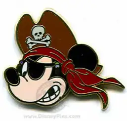 Pirate Mickey Mouse is a Limited Edition (LE) 350 pin from the Pirates of the Caribbean - Legend of the Golden Pins pin series. It was originally released on , 2006 and was available from Disneyland Resort .