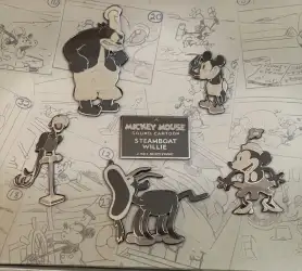 Steamboat Willie is a Limited Edition (LE) 3000 pin from the Disney Catalog - Animated Short Boxed Set pin series. It was originally released on , 2002 and was available from Disney Store US .
