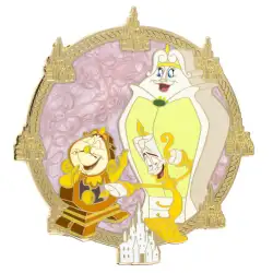 Cogsworth, Lumiere, and Armoire is a Limited Edition (LE) 300 pin from the Pink A La Mode (PALM) - Disney Iconic Series: Beauty and the Beast pin series. It was originally released on , 2024 and was available from an Officially Licensed Disney trading pin vendor (see description for more information).