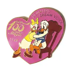 "Donald's Dream Voice" with Donald and Daisy Duck is a Limited Edition (LE) 2600 pin from the Mickey & Pals - 100 Years of Magic pin series. It was originally released on , 2001 and was available from an Officially Licensed Disney trading pin vendor (see description for more information).