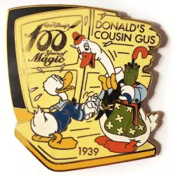 "Donald's Cousin Gus" starring Donald Duck is a Limited Edition (LE) 2600 pin from the Mickey & Pals - 100 Years of Magic pin series. It was originally released on , 2001 and was available from an Officially Licensed Disney trading pin vendor (see description for more information).
