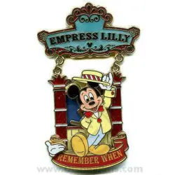 The Empress Lilly is a Limited Edition (LE) 750 pin from the White Glove Series - Remember When Collection pin series. It was originally released on , 2006 and was available from Walt Disney World .