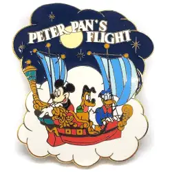 Peter Pan's Flight - Mickey, Pluto and Donald is an Open Edition pin from the Disneyland Attractions (2003) Collection pin series. It was originally released on , 2002 and was available from Disneyland Resort .