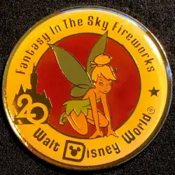 Fantasy in the Sky Fireworks - Tinker Bell is an Open Edition pin in the 20 Magical Years Framed Set 15-pin set from the Walt Disney World 20th Anniversary pin series. It was originally released in July, 1991 and was available from Walt Disney World .