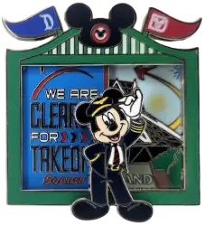 Soarin' (We Are Cleared For Takeoff) is a Limited Edition (LE) 4000 pin from the Bicoastal Adventures Series pin series. It was originally released on , 2024 and was available from Multiple Sources (WDW, DLR, etc.).