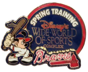 Atlanta Braves Spring Training - Mickey at Bat is a Limited Edition (LE) 750 pin from the Disney's ESPN Wide World of Sports pin series. It was originally released in January, 2009 and was available from Walt Disney World .