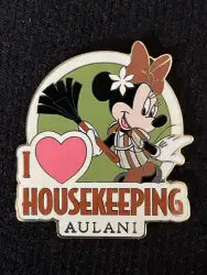 Minnie is an Open Edition pin from the Aulani Resort Housekeeping pin series. It was available from an Officially Licensed Disney trading pin vendor (see description for more information).