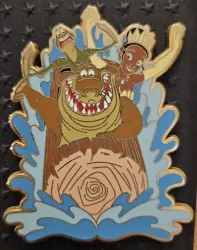 Tiana and Friends Riding Splash Mountain is a pin from the Fantasy Pin Series pin series. It is an Unlicensed (Fantasy) pin, so therefore it is not allowed to be traded in the Disney Parks.
