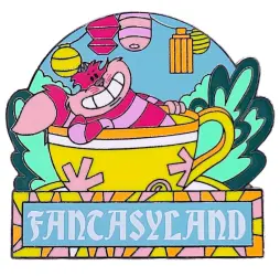Fantasyland (Cheshire Cat) ONLY is an Open Edition pin in the Full Set 4-pin set from the Stylized Disneyland Lands Booster Set pin series. It was originally released on , 2024 and was available from Disneyland Resort .