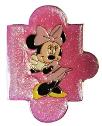 Mickey & Friends - Minnie Mouse ONLY is an Open Edition pin in the Mickey & Friends - Full Set 3-pin set from the Glitter Character Puzzles pin series. It was originally released on , 2000 and was available from Multiple Sources (WDW, DLR, etc.).