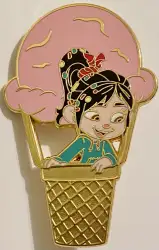 Vanellope is a Limited Edition (LE) 400 pin from the Ice Cream Balloon pin series. It was originally released on , 2015 and was available from Disney Studio Store Hollywood / Soda Fountain .