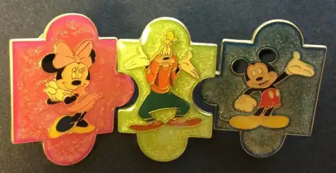 Mickey & Friends - Full Set is an Open Edition 3-pin set from the Glitter Character Puzzles pin series. It was originally released on , 2000 and was available from Multiple Sources (WDW, DLR, etc.).