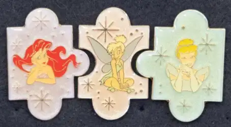 Just the Girls - Full Set is an Open Edition 3-pin set from the Glitter Character Puzzles pin series. It was originally released on , 2000 and was available from Multiple Sources (WDW, DLR, etc.).