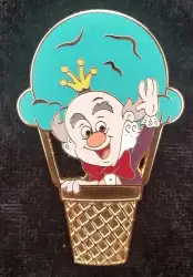 King Candy is a Limited Edition (LE) 400 pin from the Ice Cream Balloon pin series. It was originally released on , 2015 and was available from Disney Studio Store Hollywood / Soda Fountain .