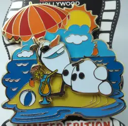 Olaf in the Sun is a Limited Edition (LE) 400 pin from the DSSH Summer Outdoors Collection pin series. It was originally released on , 2014 and was available from Disney Studio Store Hollywood / Soda Fountain .