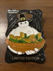 Pilgrim Baymax with corn is a Limited Edition (LE) 250 pin from the Thanksgiving pin series. It was originally released in November, 2015 and was available from Walt Disney Imagineering .