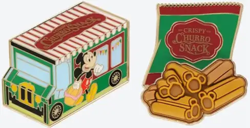 Crispy Churro Snack - Full Set is an Open Edition 2-pin set from the Tokyo Disney Snack Pin Sets Collection pin series. It was originally released on , 2023 and was available from Tokyo Disneyland Resort .