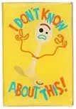 I Don't Know About This! is an Open Edition pin from the Toy Story 4 Poster Mystery Collection pin series. It was originally released on , 2021 and was available from Tokyo Disneyland Resort .