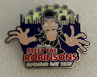 Meet The Robinsons - Opening Day 2007 - Bowler Hat Guy is a Limited Edition (LE) 500 pin from the Meet the Robinsons Opening Day pin series. It was originally released in January, 2007 and was available from Disney Store US .