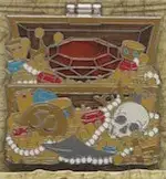 Hinged Treasure Chest Large Red Jewel COMPLETER is a Limited Edition (LE) 500 pin in the Hinged Treasure Chest Boxed Set - Full Set 6-pin set from the Disneyland Pirates of the Caribbean 50th Anniversary pin series. It was originally released on , 2017 and was available from Disneyland Resort .