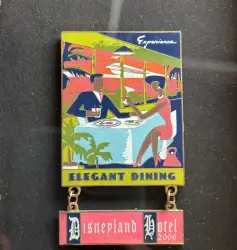 Elegant Dining - Disneyland Hotel 2006 is a Limited Edition (LE) 750 pin from the The Happiest Stay On Earth pin series. It was originally released on , 2006 and was available from Disneyland Resort .