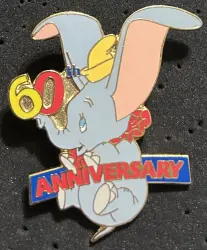 Dumbo 60th Anniversary is a Limited Edition (LE) 3500 pin from the Dumbo pin series. It was originally released on , 2001 and was available from an Officially Licensed Disney trading pin vendor (see description for more information).
