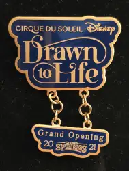 Drawn to Life Grand Opening is an Open Edition pin from the Cirque du Soleil pin series. It was originally released in January, 2021 and was available from Walt Disney World .